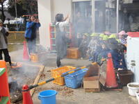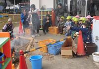 幼稚部の園庭で、秋に収穫したサツマイモを焼きました。先生方が砂場にかまど二基すえ、その中に落ち葉とイモを入れて焚火で焼きイモをしました。焼けるまでには、しばらく時間かかります。子供たちは、みんなで「おいしくなーれ、おいしくなーれ」とおまじないを唱えていました。