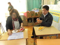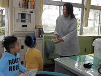 今日は学校に、お客様が見えました。ニュージーランドの人工内耳支援センターに勤務するスピーチ・ランゲージ・セラピストのJoeさんと群馬大学の木村先生です。ちょうど、この授業も参観いただきました。右のトランプを学校にいただきました。