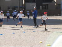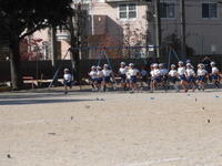 今日の目標は、自分にあった呼吸法を見つけること。「スー ハッ ハッ」「スー スー ハッ」「スー スー ハッ ハッ」の3つの呼吸を試し、自分にあった呼吸法を決めます。高学年なので、走る距離は1300メートル。小学部は近隣の小学校にでかけて交流する予定があるので、これから練習をがんばってくれることでしょう。