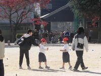 青空のもと、幼稚部の子供たちのミニ運動会が行われました。遠方より、おじいさんやおばあさんも駆けつけ、みんなはりきって、かけっこ、ダンス、玉入れ、親子競技などに取り組みました。