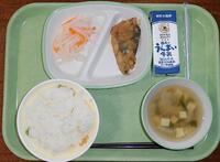 今日の給食(有機栽培米、牛乳、さわらの西京焼き、小松菜のおかか和え、豆腐のとろみ汁)