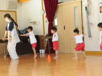 金曜日の午前中に幼稚部へ行くと、みんながリトミックをしています。トンボや馬の動きをリズムに乗って行っていました。1年生のポーズ(ピッと止まる)も格好よくなっています。