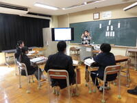 6校時に、お二人の県議会議員が来校され、「GACHi高校生×県議会議員」が行われました。高等部からは14名が参加。自己紹介のあと、ガチ解説&クイズ、ガチ意見交換と進みました。聾学校では初めての「GACHi高校生×県議会議員」、生徒はいささか緊張気味でした。クイズのなかで、投票場に一番に行くと、投票箱の中身が空かを確かめる役割があること。インターネット投票は、まだ日本ではできないことなどを学びました。意見交換では、生徒が感じている電車利用をする時の不便さ。高校総体の陸上競技等でスタートランプを導入してほしいこと。校則に対する意見。なぜ県議を目指したのかなどがでました。お二人の議員には、丁寧に生徒からの疑問、意見を聞いていただき、コメントをいただけました。議員さんは地域住民の意見を代表して意見を県に伝えてくれていること。18歳になったら選挙を通して政治参加することが大切であることを学びました。生徒が県政に関心をもつ機会になったと思います。