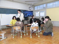 今日は小学部で、児童向けの手話教室を開催しました。午前中に行った低学年は、「立つ」「座る」といった動詞の手話を学び、動詞ビンゴゲームをして楽しみました。午後から行った高学年は、「成人の日」「建国記念日」「春分の日」といった祝祭日の学習をしたり、デフリンピックのお話を伺ったりしました。講師でみえたお二人の先生を囲み、楽しく手話教室が行われました。