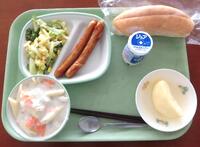 昨日予告したとおり、今日の給食は、(背割りこめっこぱん、ジョア、ロングウインナー、ミックスサラダ、クリームシチュー)