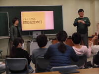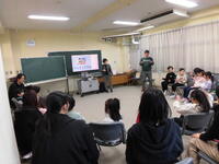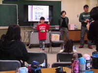今日は小学部で、児童向けの手話教室を開催しました。午前中に行った低学年は、「立つ」「座る」といった動詞の手話を学び、動詞ビンゴゲームをして楽しみました。午後から行った高学年は、「成人の日」「建国記念日」「春分の日」といった祝祭日の学習をしたり、デフリンピックのお話を伺ったりしました。講師でみえたお二人の先生を囲み、楽しく手話教室が行われました。