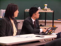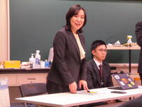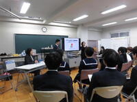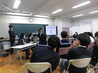 6校時に、お二人の県議会議員が来校され、「GACHI高校生×県議会議員」が行われました。高等部からは14名が参加。自己紹介のあと、ガチ解説&クイズ、ガチ意見交換と進みました。聾学校では初めての「GACHI高校生×県議会議員」、生徒はいささか緊張気味でした。クイズのなかで、投票場に一番に行くと、投票箱の中身が空かを確かめる役割があること。インターネット投票は、まだ日本ではできないことなどを学びました。意見交換では、生徒が感じている電車利用をする時の不便さ。高校総体の陸上競技等でスタートランプを導入してほしいこと。校則に対する意見。なぜ県議を目指したのかなどがでました。お二人の議員には、丁寧に生徒からの疑問、意見を聞いていただき、コメントをいただけました。議員さんは地域住民の意見を代表して意見を県に伝えてくれていること。18歳になったら選挙を通して政治参加することが大切であることを学びました。生徒が県政に関心をもつ機会になったと思います。