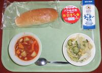 今日の給食(はちみつパン、牛乳、ポークビーンズ、ツナサラダ、ヨーグルト)