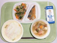 今日の給食(ご飯、牛乳、野菜はんぺん、切り干し大根の煮物、豚汁)